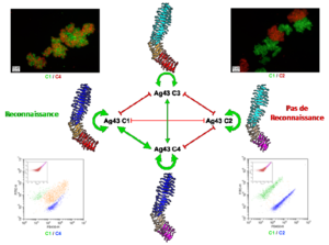 Les cellules exprimant les Ag43 C1 et C2 ne se reconnaissent pas et forment seulement des autoagrégats, ce qui entraîne une discrimination des populations d’E. coli.